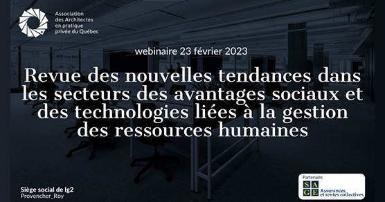 L’AAPPQ et SAGE Assurances et rentes collectives vous invitent à leur webinaire sur les nouvelles tendances en matière d’avantages sociaux et technologies en ressources humaines le 23 février prochain à 9h.
