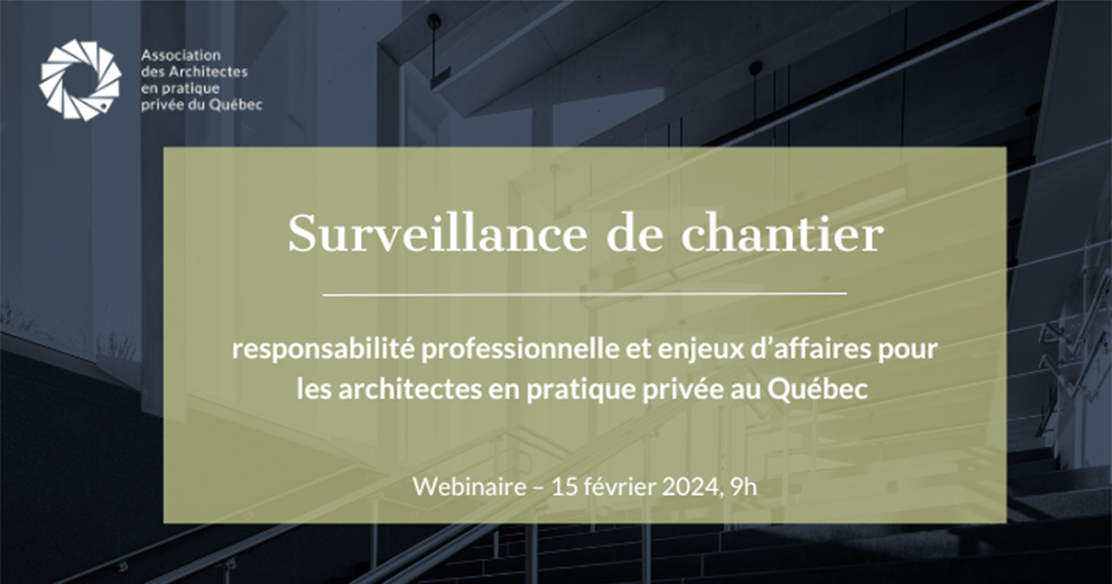 Webinaire « Surveillance de chantier : responsabilité professionnelle et enjeux d’affaires pour les firmes au Québec »