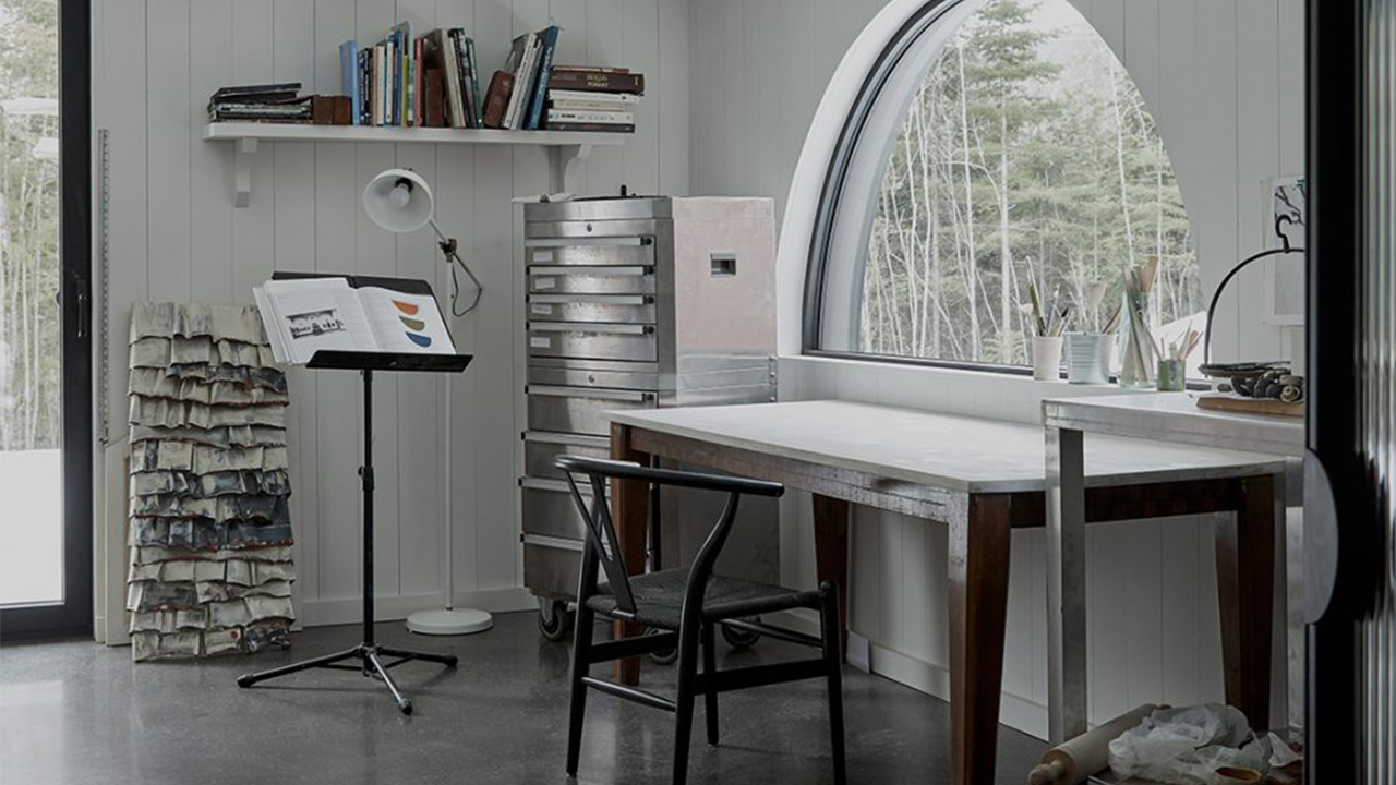 Un troisième canon lumineux positionné dans l’atelier de céramique dirige la lumière zénithale dans la pièce.