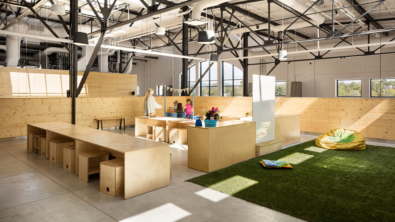 En créant une nouvelle destination culinaire, le Grand Marché est un projet rassembleur et porteur collectivement. Aménagé dans l’ancien Pavillon du Commerce, il met en valeur le patrimoine bâti en s’insérant délicatement entre la structure existante pour la magnifier. Le concept reprend l’idée d’une ville ou d’un village avec plusieurs petits bâtiments qui se glissent sur la rue principale, les rues secondaires, les ruelles et la grande place. À l’intérieur, la grande halle est baignée de lumière naturelle grâce à de grandes fenêtres s’ouvrant complètement sur la façade Sud. Les étals sont disposés le long de la façade Sud, en lien direct avec le marché saisonnier. À cela s’ajoutent plusieurs grands puits de lumière placés de manière stratégique à travers la structure du toit dans le marché. Les matériaux choisis se marient à l’environnement bâti et permettent aux produits locaux offerts par les divers marchands d’être mis en valeur. La mise aux normes complète a été faite en fonction des nouveaux usages et des exigences d’aujourd’hui.